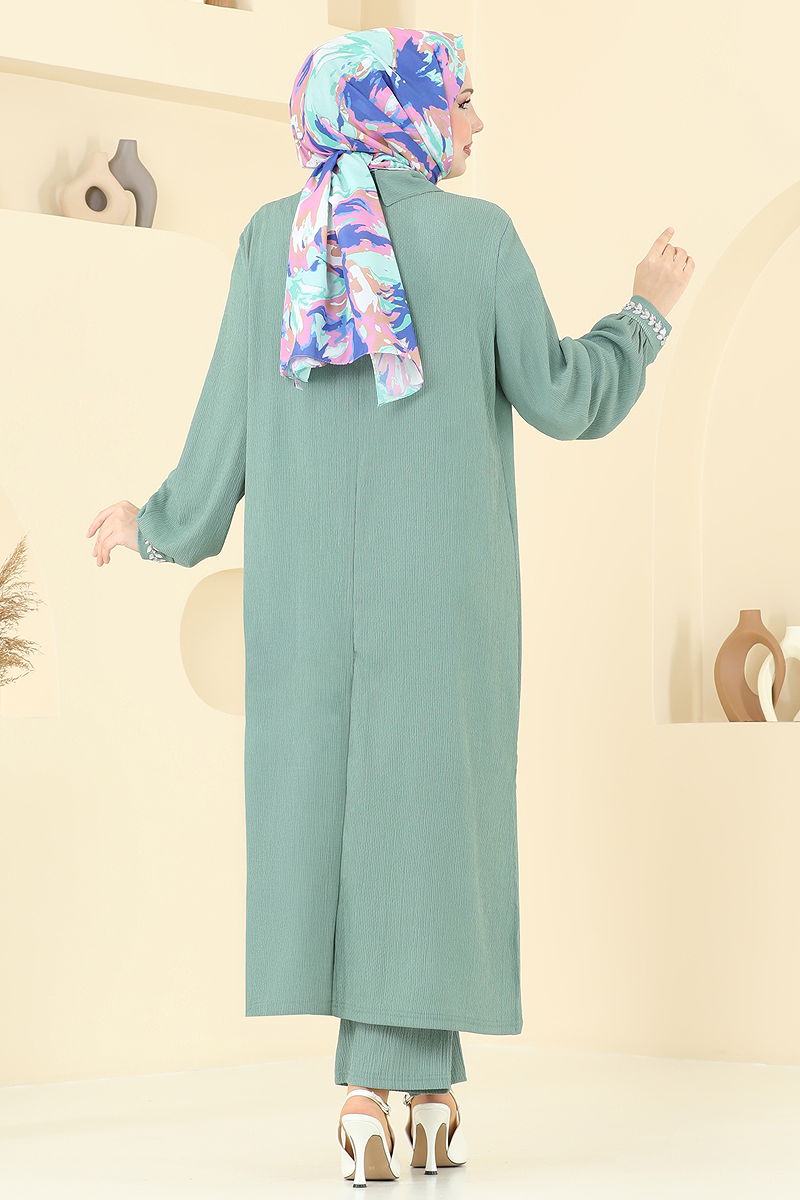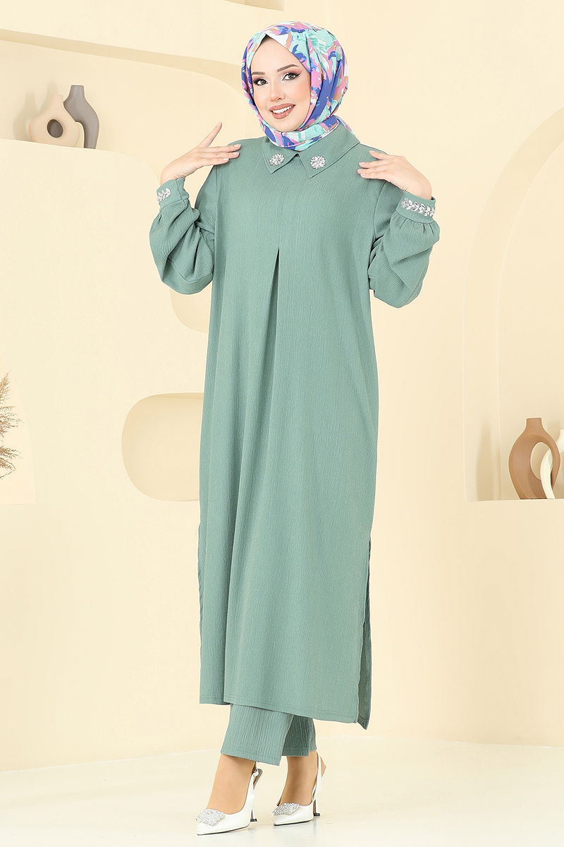 Yakası Taşlı Bürümcük Takım 398DVL817 Açık Mint