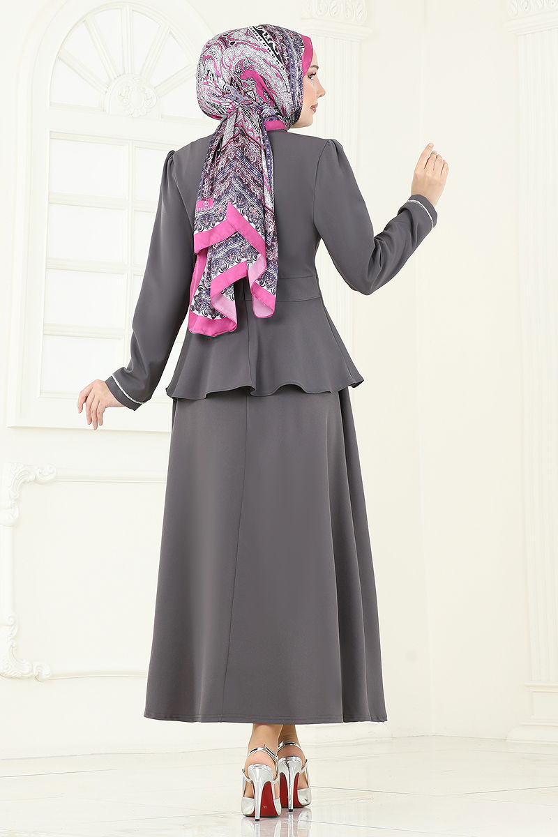 المنتج لديه ياقة بيضوية. غير مبطنة. المنتج به سحاب في جزء من الخلف. يتم لصق الحجارة. المنتج يحتوي على حزام خصر مُخاط. .خصر التنورة مرن قد يكون هناك اختلاف في الدرجة اللونية في المنتج بسبب التقاط الصور الفوتوغرافية.