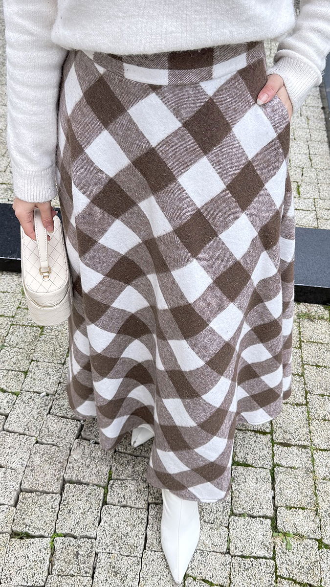 Yan Cepli Ekose Etek Desen 2 Kahve