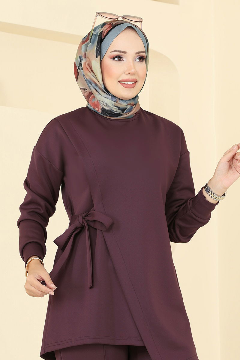 Ürün Özelliği : Yeni sezon tesettür moda ürünüdür. Yandan bağlanabilir kemeri bulunmaktadır. Ürün Bisiklet yakadır. Pantolon beli yarım lastiklidir.Konsept fotoğraf çekimlerinden dolayı üründe ton farklılığı olabilir.