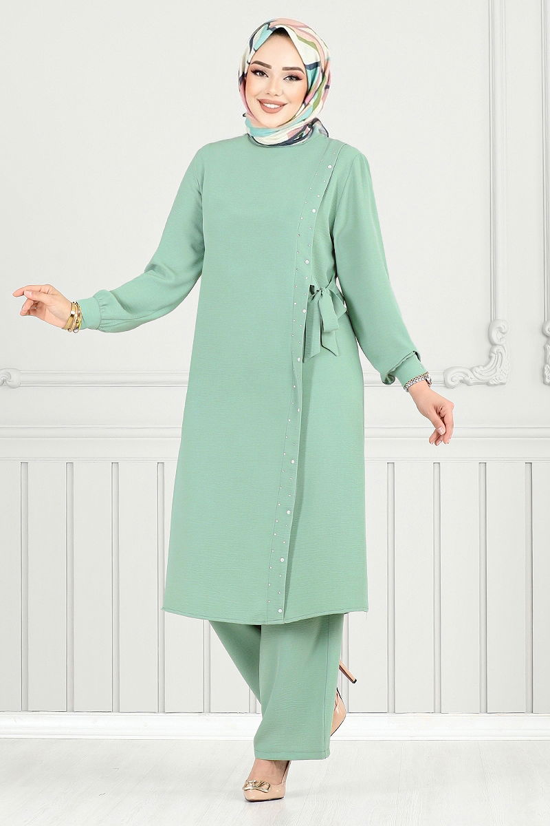 Ürün Özelliği : Yeni sezon tesettür moda ürünüdür. Ürün Hakim yakadır. Astarsızdır. Ürün Sırttan fermuarlıdır. Taşlar yapıştırmadır. Ürün bağcıklıdır. Kemer Ürüne Dikilidir. Pantolon beli lastiklidir.Konsept fotoğraf çekimlerinden dolayı üründe ton farklılığı olabilir.