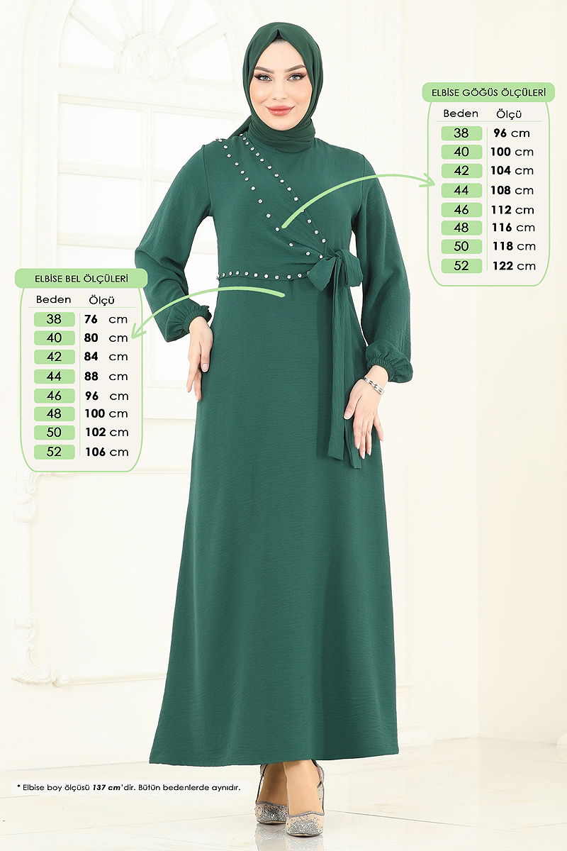 Ürün Özelliği : Yeni sezon tesettür moda ürünüdür. Sırttan kullanılabilir bir düğmesi bulunmaktadır. Beli bağcıklıdır. Ürün Bisiklet yakadır. Astarsızdır. Taş detayları çakımdır. Kemer Ürüne Dikilidir. Manşeti lastiklidir. Konsept fotoğraf çekimlerinden dolayı üründe ton farklılığı olabilir.