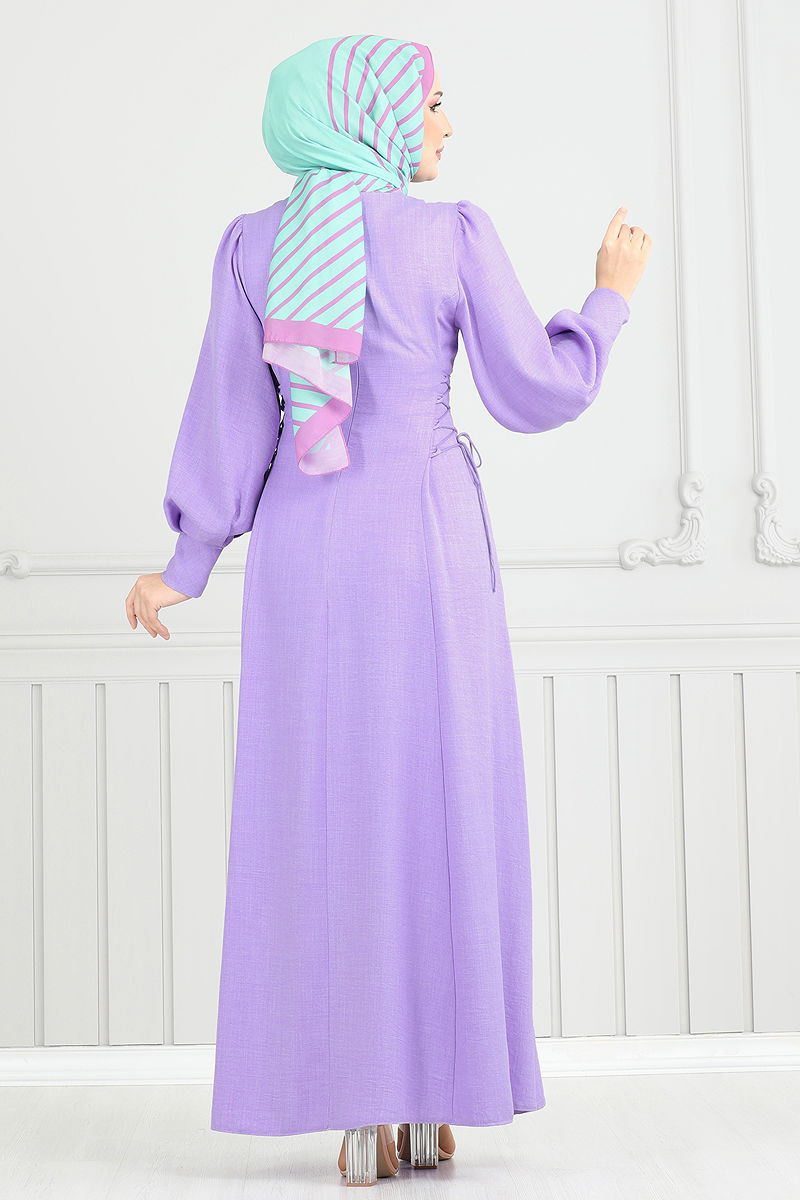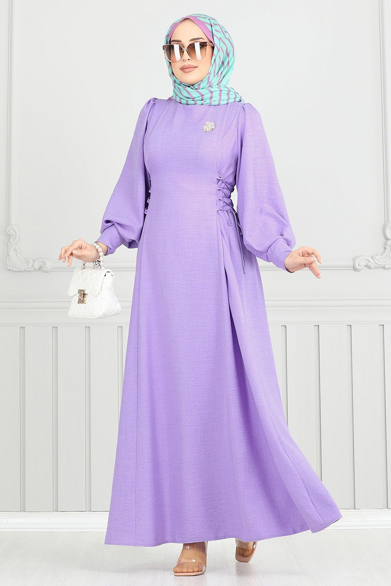 Bu şık Yandan Bağcıklı Tesettür Elbise, her mevsim rahatlıkla kullanabileceğiniz mükemmel bir seçimdir. Kaliteli keten kumaştan üretilmiş olan bu elbise, hassas yıkama ile 30 derecede yıkanabilir ve uzun ömürlü kullanım sunar. Sırt kısmında yer alan fermuar, giyim kolaylığı sağlarken, bisiklet yakası modern bir hava katmakta. Bel kısmındaki bağcıklar, şıklığınıza şıklık katar. Astarsız yapısı ile hafif ve konforlu bir kullanım vaat eden bu elbise, her ortamda elegan bir duruş sergilemenizi sağlayacak.