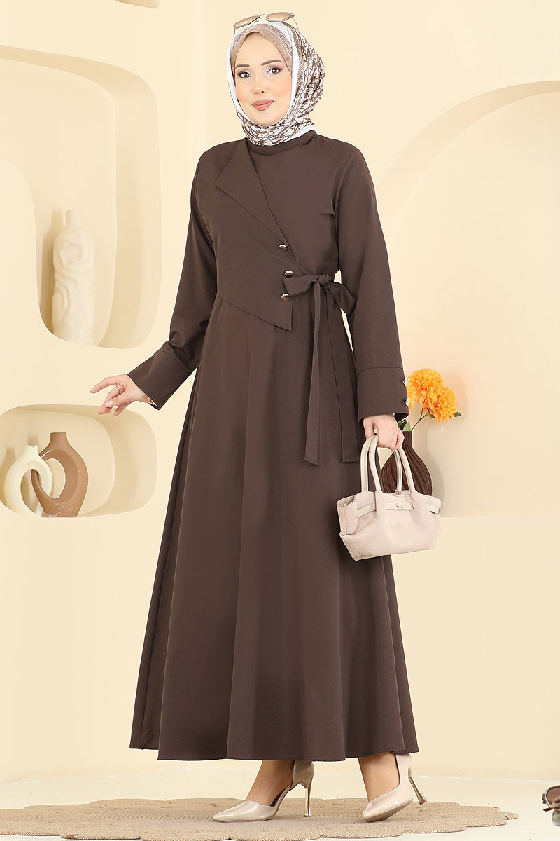 Yandan Bağlamalı Kloş Elbise 3085KTR750 Kahve