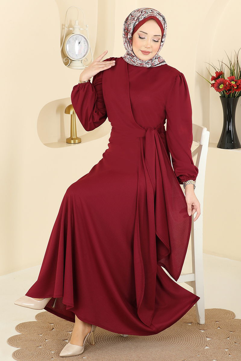 Yandan Bağlamalı Krep Elbise 0848LVA1173 Bordo