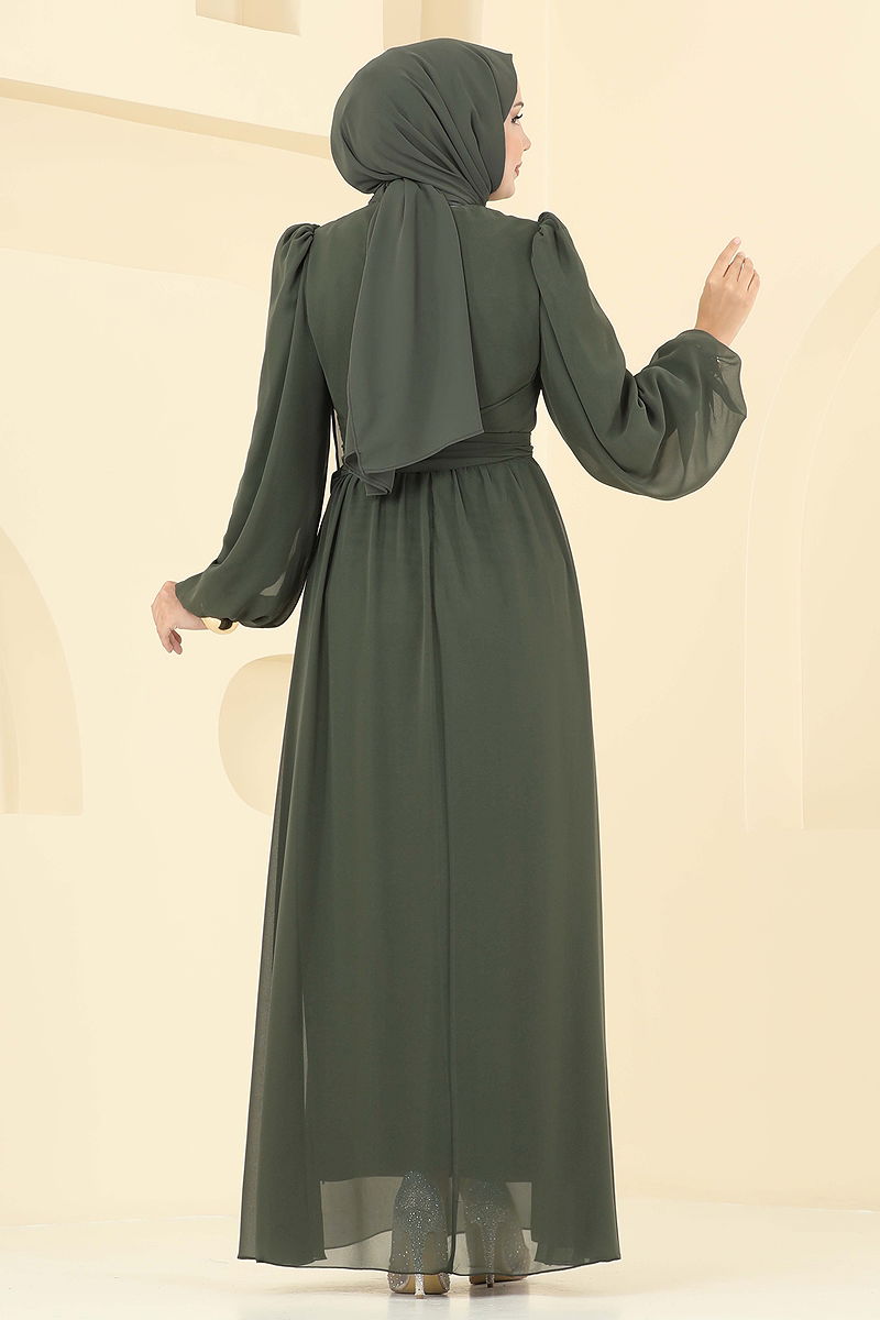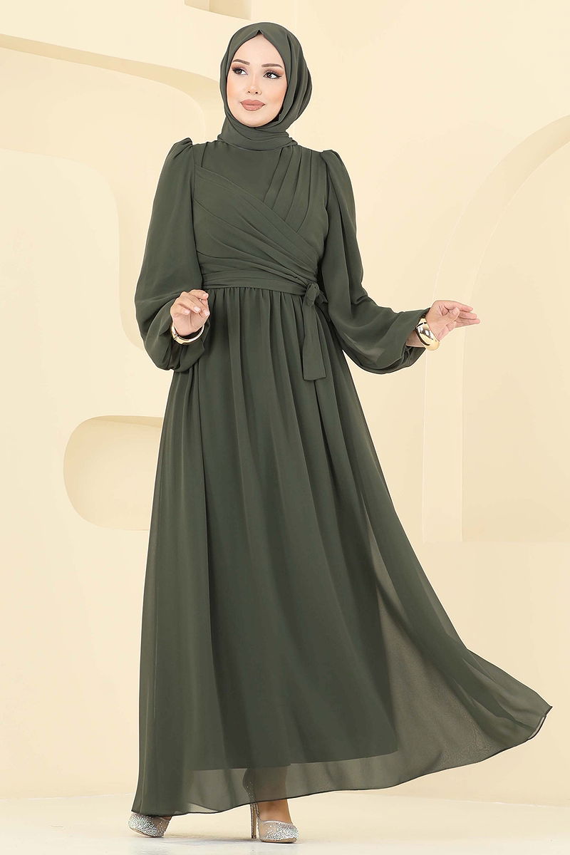 Yandan Bağlamalı Şifon Abiye Haki