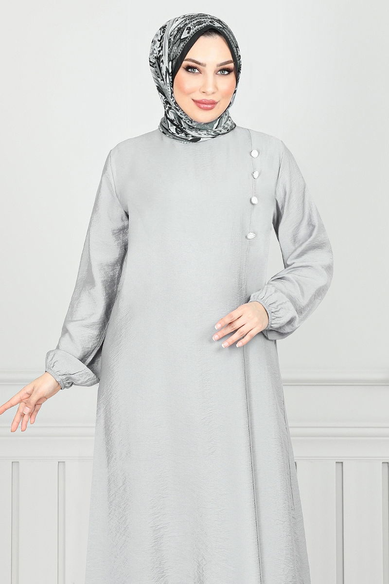 Yandan Düğmeli Tesettür Takım Gri
