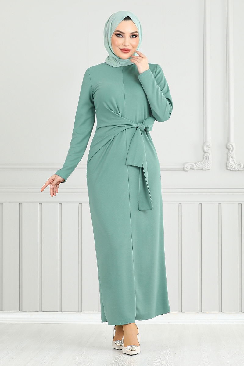 Yandan Kemer Detaylı Elbise 0409ALG1079-M Mint