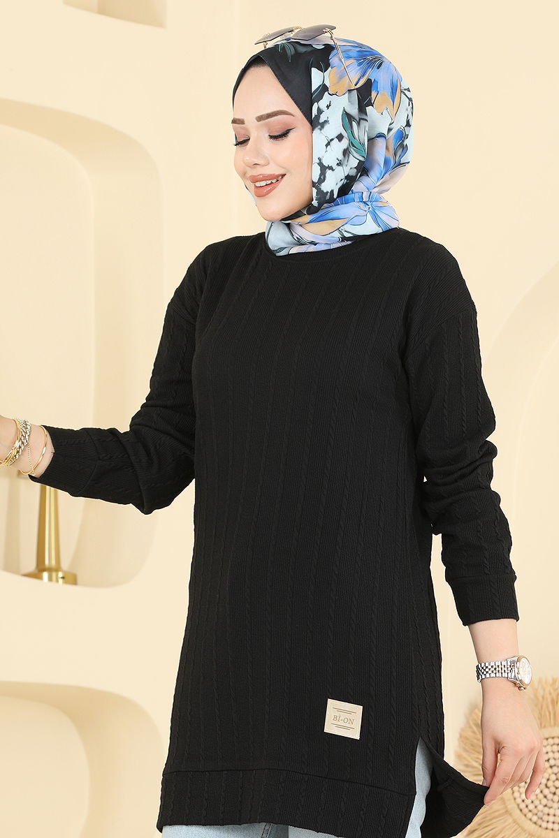 Yandan Yırtmaçlı Bürümcük Tunik 190BO429 Siyah