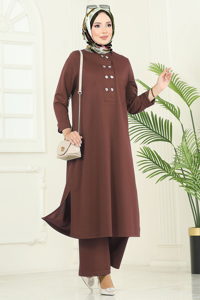 Yandan Yırtmaçlı Mira Takım Kahve