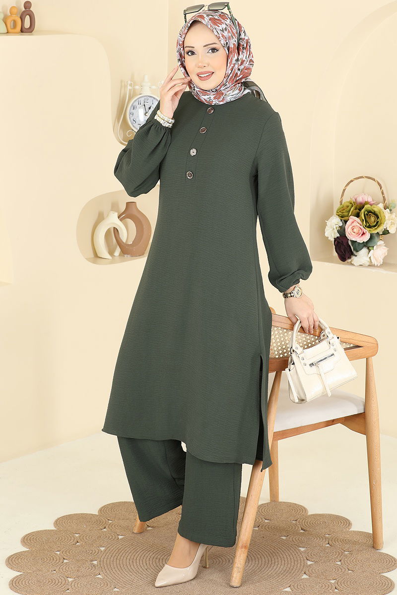 Yandan Yırtmaçlı Şık Takım 3032SMD1186 Haki