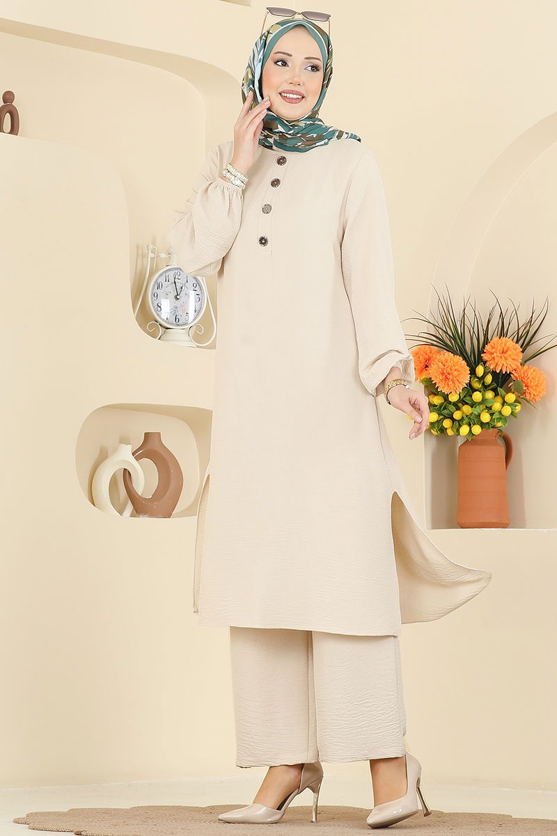 Ürün Özelliği : Yeni sezon tesettür moda ürünüdür. Ürün Bisiklet yakadır. Ürün Önden düğmelidir. Tunik yandan yırtmaçlıdır.. Pantolon beli lastiklidir. Manşet lastiklidir. Konsept fotoğraf çekimlerinden dolayı üründe ton farklılığı olabilir.