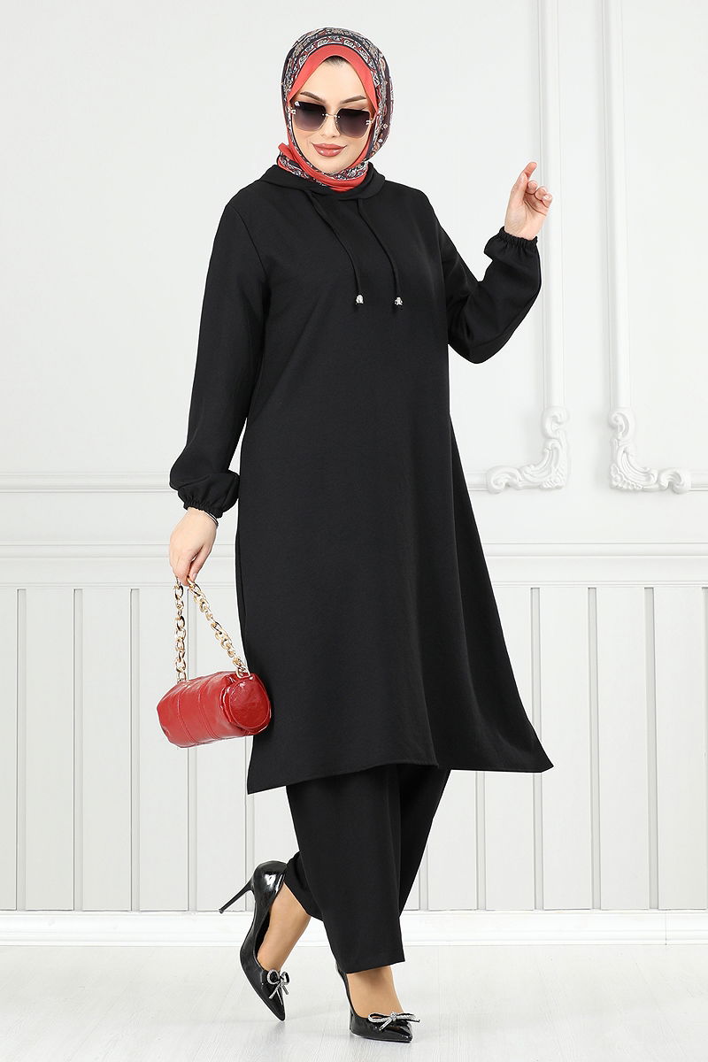 Ürün Özelliği : Yeni sezon tesettür moda ürünüdür. Ürün Kapşonlu yakadır. Tunik yandan yırtmaçlıdır.. Astarsızdır. Kapşon ürüne dikilidir. Pantolon beli lastiklidir. Manşeti lastiklidir. Konsept fotoğraf çekimlerinden dolayı üründe ton farklılığı olabilir.