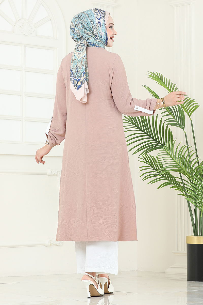 Ürün Özelliği : Yeni sezon tesettür moda ürünüdür. Ürün kafadan giyilmektedir. Ürün Bisiklet yakadır. Tunik yandan yırtmaçlıdır.. Astarsızdır. Aksesuarlar ürüne dahil değildir. Pantolon beli lastiklidir. Manşet düğmeleri aktiftir. Konsept fotoğraf çekimlerinden dolayı üründe ton farklılığı olabilir.