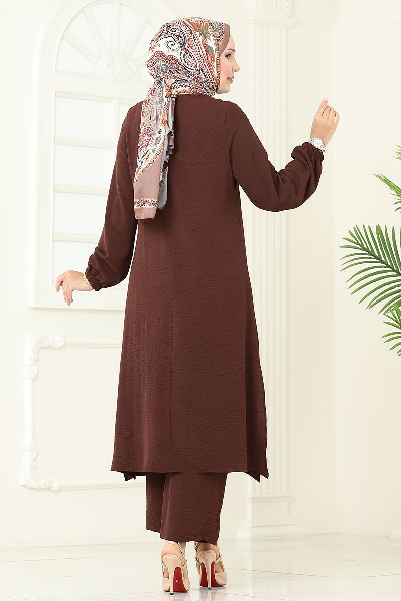 Yandan Yırtmaçlı Tesettür Takım Kahve