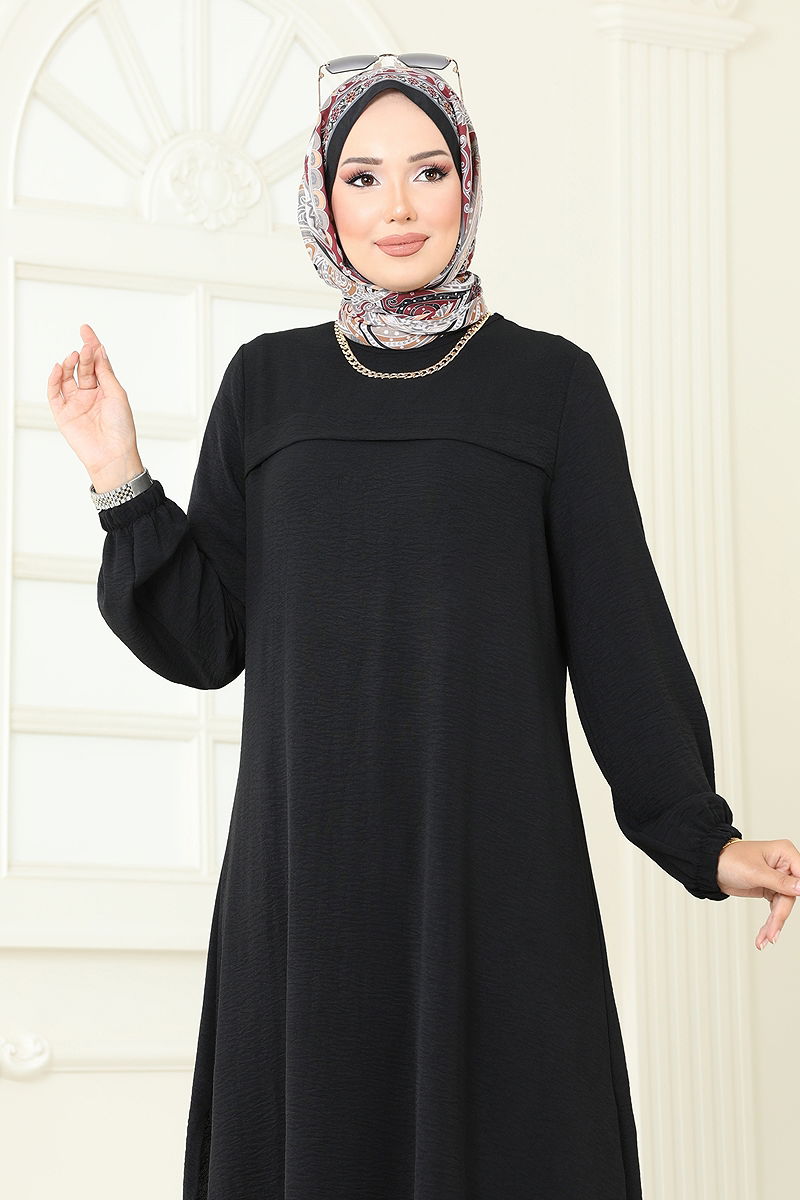 Yandan Yırtmaçlı Tesettür Takım Siyah