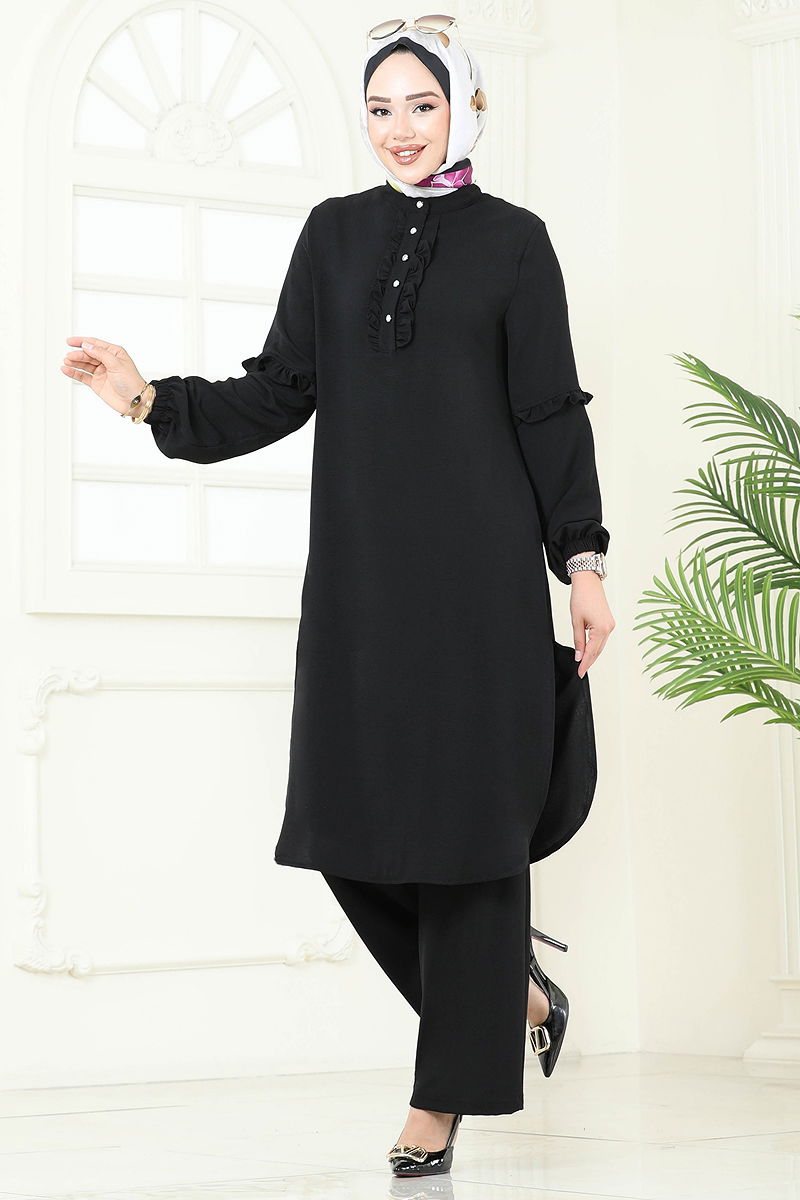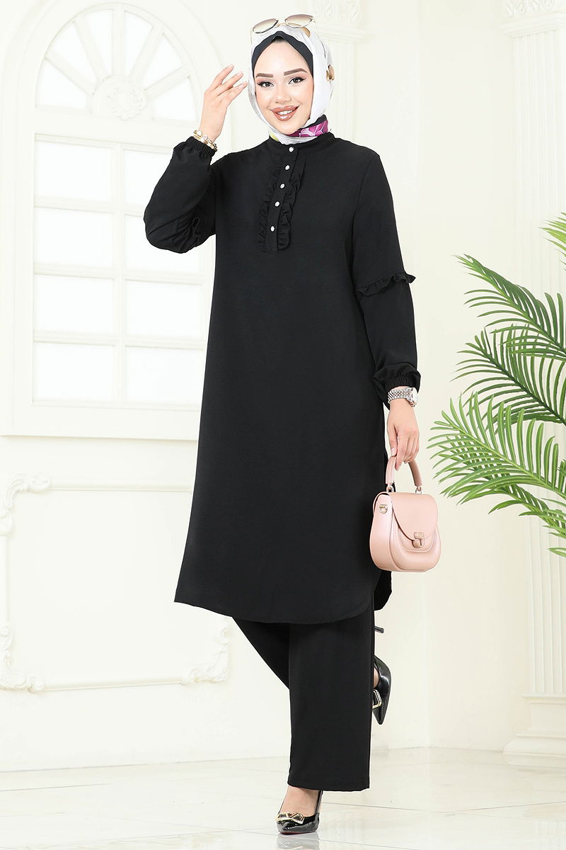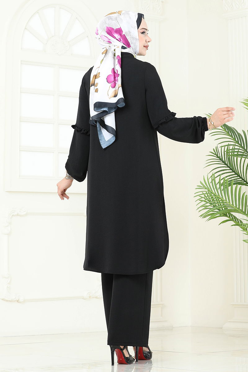 Yandan Yırtmaçlı Tesettür Takım Siyah