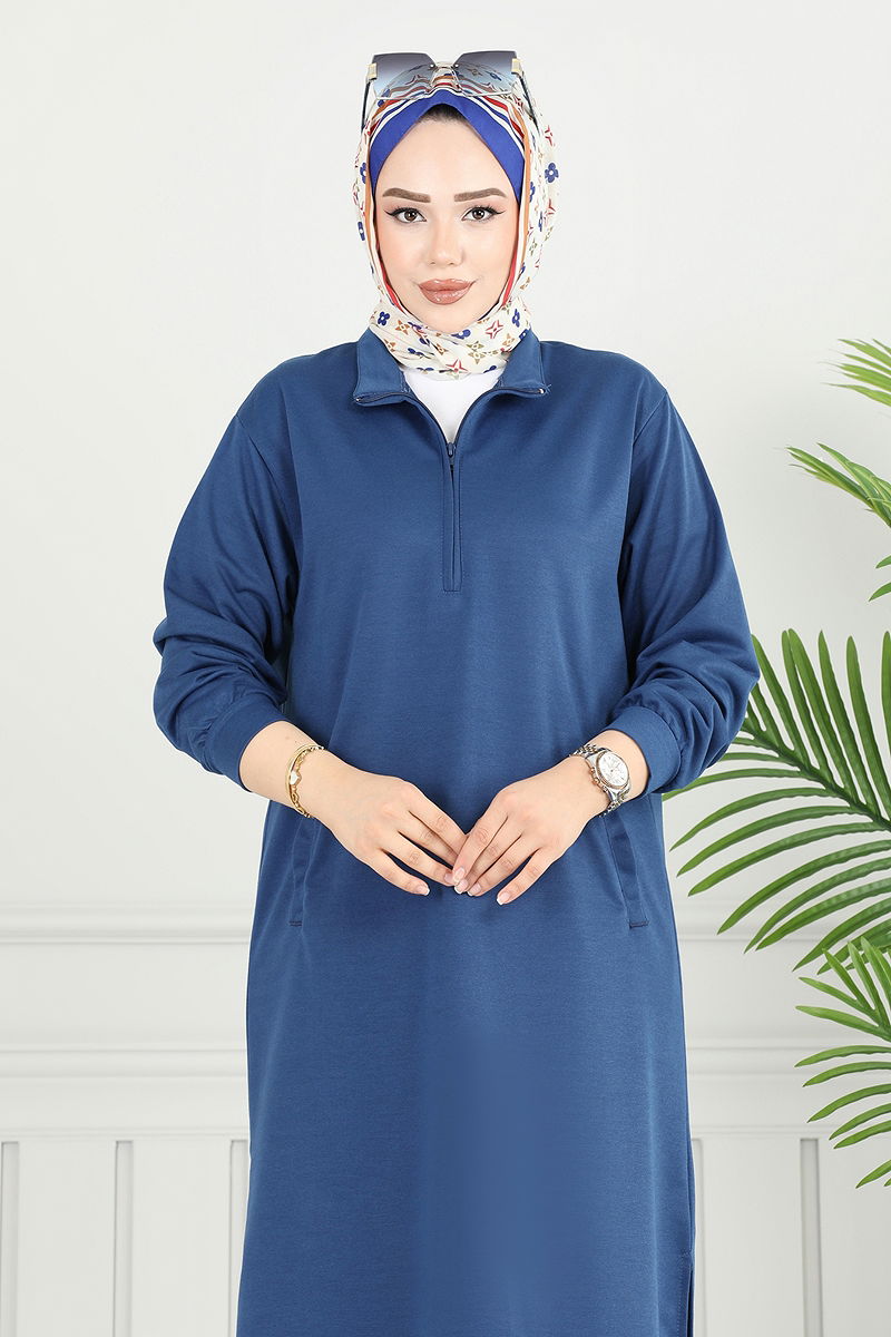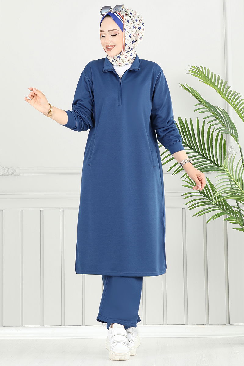Yandan Yırtmaçlı Tesettür Takım İndigo