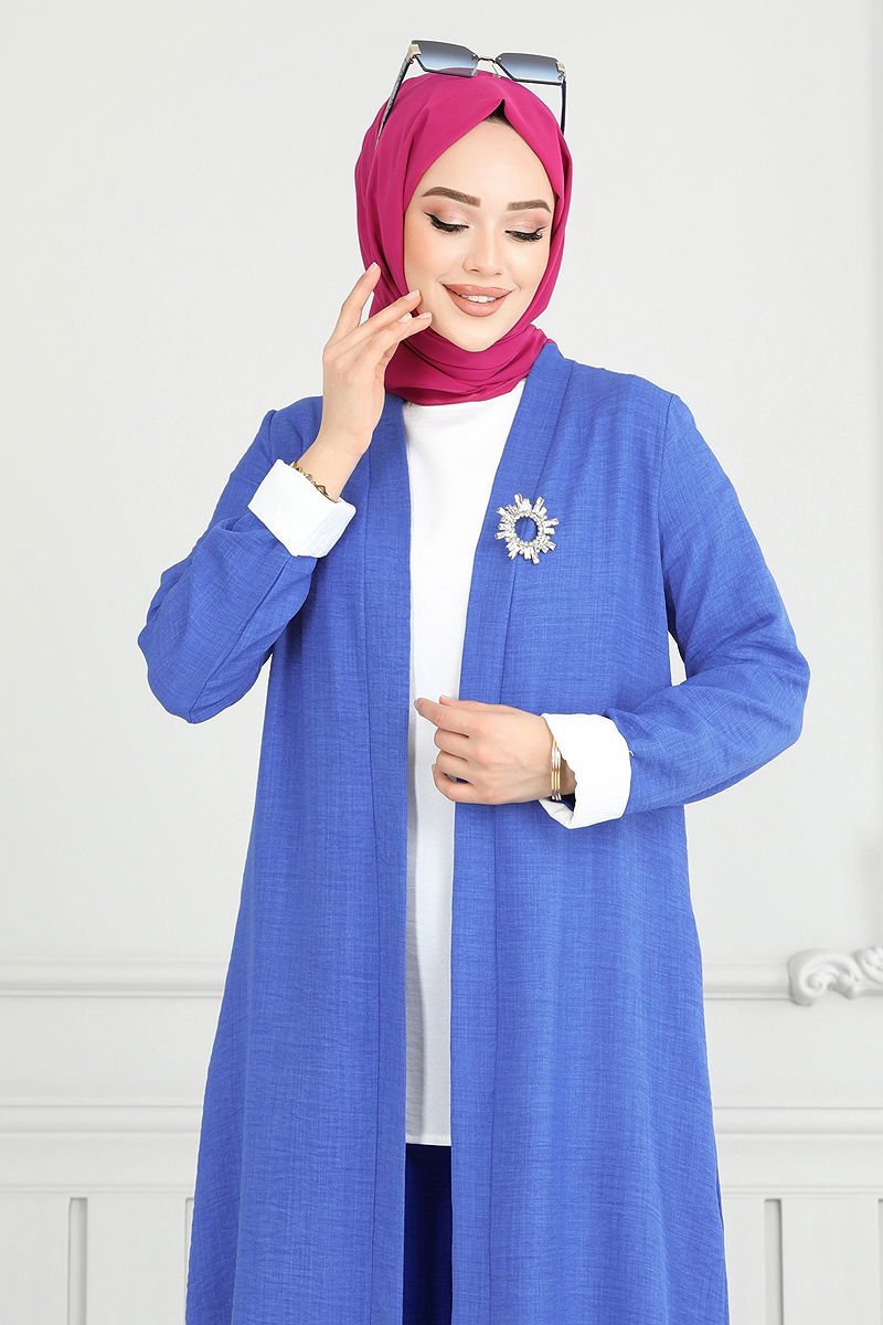 Yandan Yırtmaçlı Üçlü Takım İndigo