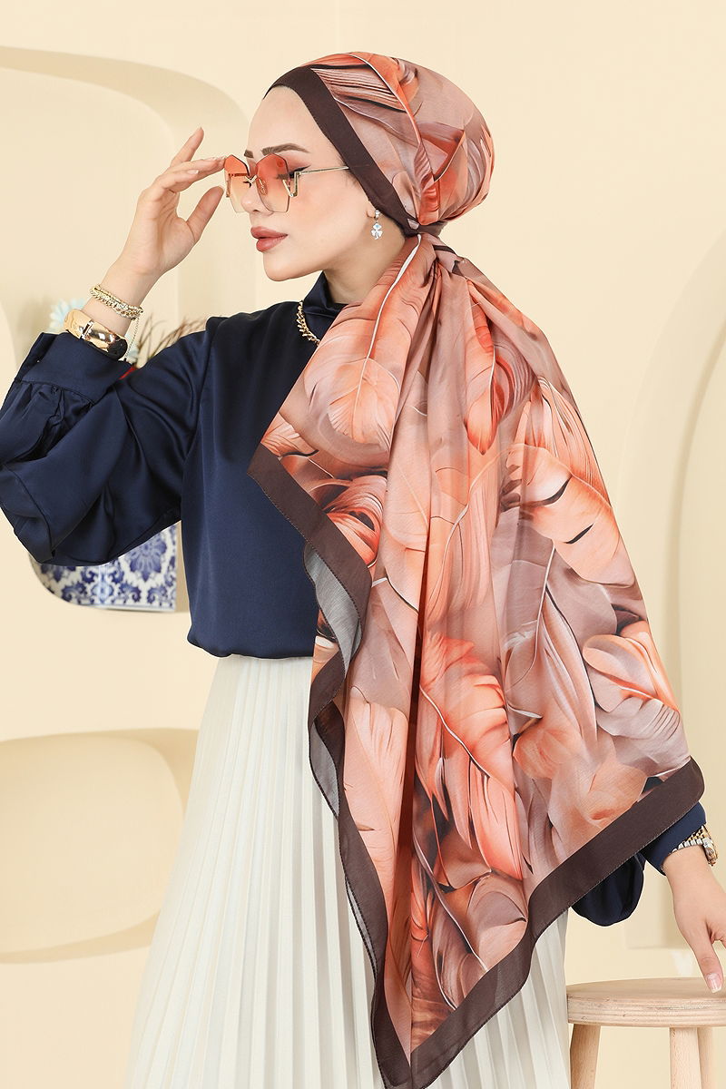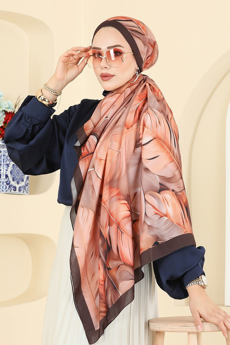 Yaprak Desenli Soft Şal Serisi 149IPK758 Kahve