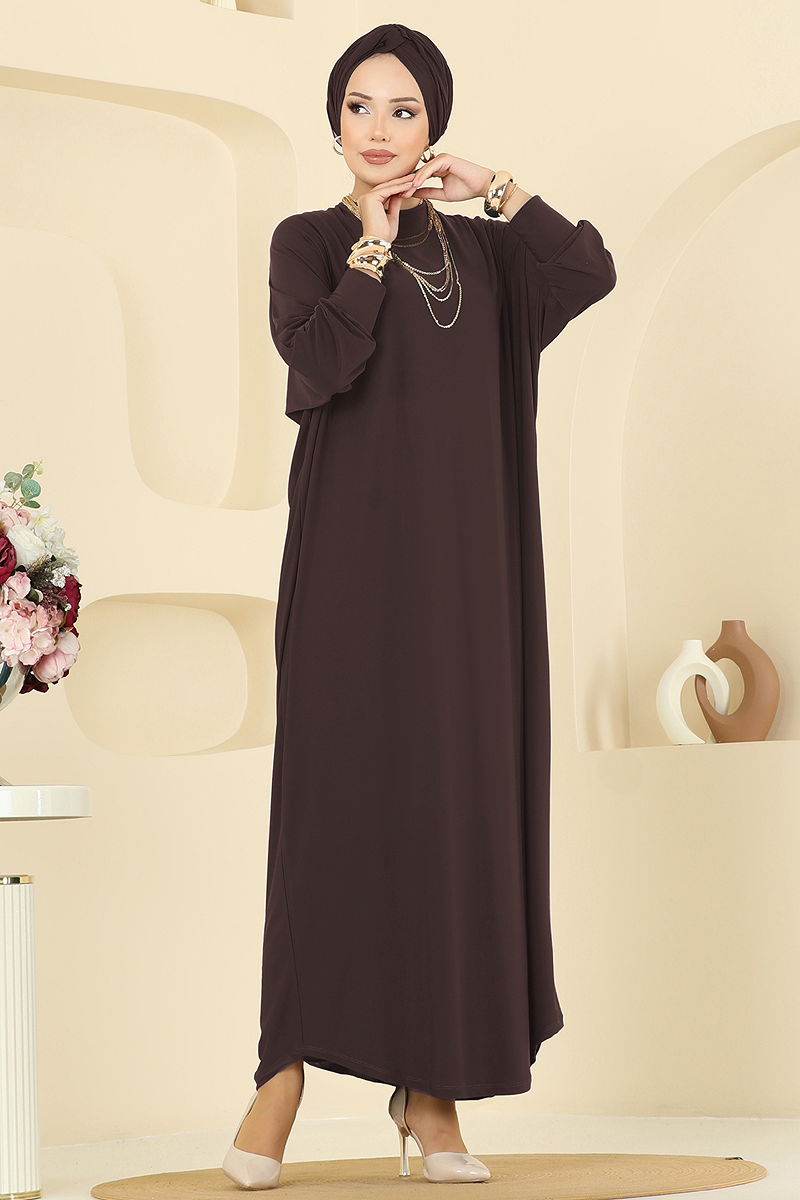 Yarasa Kol Detaylı Elbise 5011ERK1158 Acı Kahve