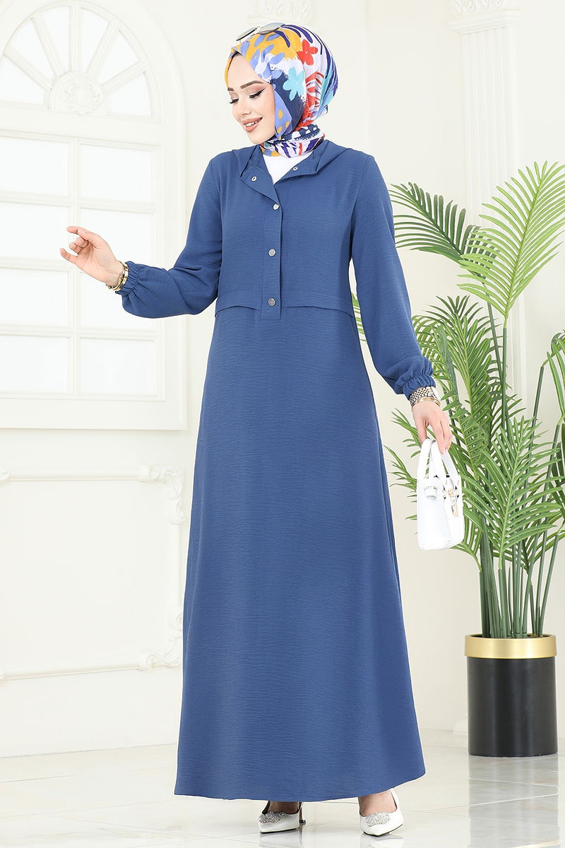 Yarım Çıtçıtlı Aerobin Elbise 9009S324 İndigo