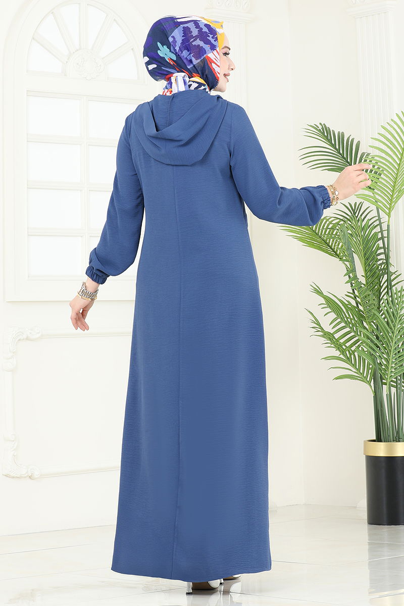 Yarım Çıtçıtlı Aerobin Elbise, aerobin kumaştan üretilmiş, kapşonlu ve astarsız bir tesettür giyim modelidir. 38 beden olarak sunulan bu şık elbise, önden kullanılabilir çıtçıtlara sahip olup dört mevsim rahatlıkla giyilebilir. Ürün, yıkama talimatlarına uyulduğu takdirde uzun ömürlü kullanım sunar: Hassas programda 30 derecede yıkanabilir. Kapşon sabit şekilde dikilmiştir ve manşetleri elastik yapıdadır, gün boyu konfor sağlar.