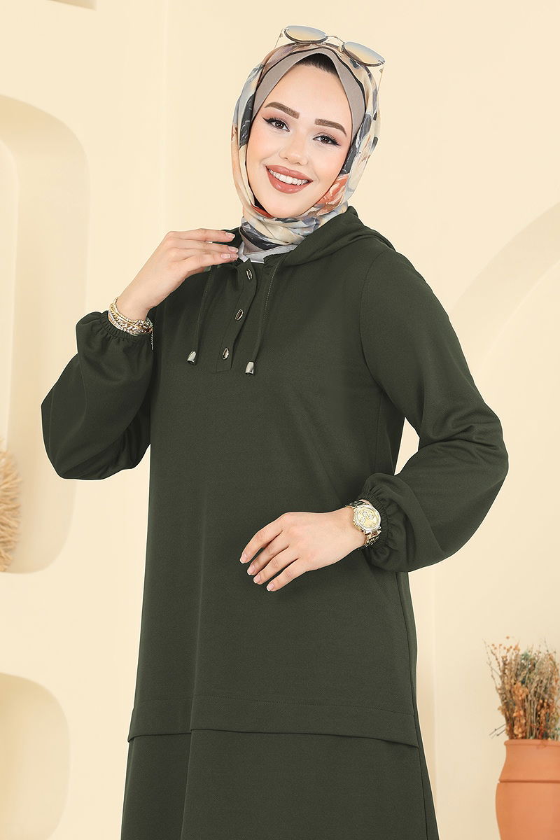 Ürün Özelliği : Yeni sezon tesettür moda ürünüdür. Yaka bağcık aktiftir. Ürün Kapşonlu yakadır. Tunik yandan yırtmaçlıdır.. Astarsızdır. Çıtçıt detayları aktiftir. Kapşon ürüne dikilidir. Pantolon beli lastiklidir. Manşet lastiklidir.Konsept fotoğraf çekimlerinden dolayı üründe ton farklılığı olabilir.
