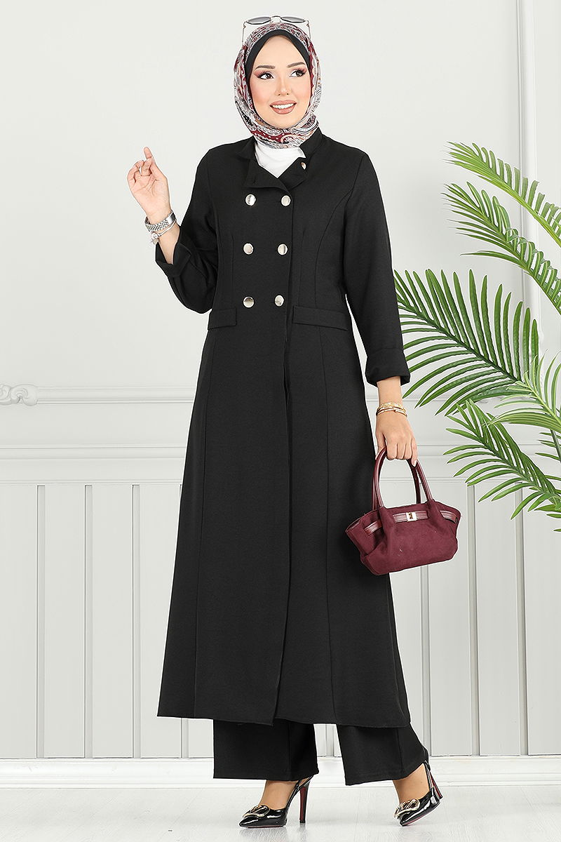 Yarım Düğme Detaylı Takım Siyah