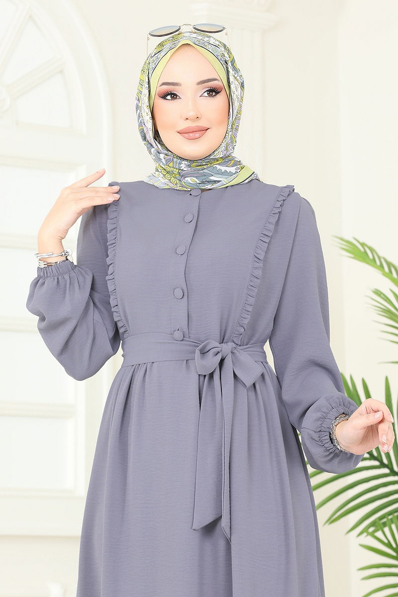 Yarım Düğmeli Aerobin Elbise Gri