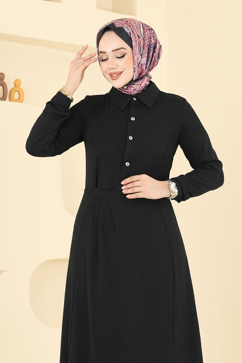 Yarım Düğmeli Aerobin Elbise Siyah