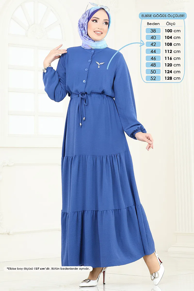 Yarım Düğmeli Aerobin Elbise, dört mevsim rahatlıkla kullanabileceğiniz ideal bir seçenektir. Hassas yapıya sahip aerobin kumaşı sayesinde hafif ve konforludur. Bu elbise, özellikle tesettür giyim tercih edenler için meticulously tasarlanmış olup, 30 derecede hassas yıkama özelliği ile uzun ömürlü kullanım sunar. Yarı hakim yaka ve ön kısmında bulunan yarım düğmeler ile modern ve şık bir görünüm sağlar. Elbise astarsızdır ve manşeti lastiklidir. Ürün bel kısmından bağcıklıdır, bu sayede farklı vücut tiplerine rahatça uyum sağlar. Boy 165 cm, göğüs 80 cm, bel 68 cm, basen 96 cm ölçülerindeki elbise, aksesuarlar dahil değildir.