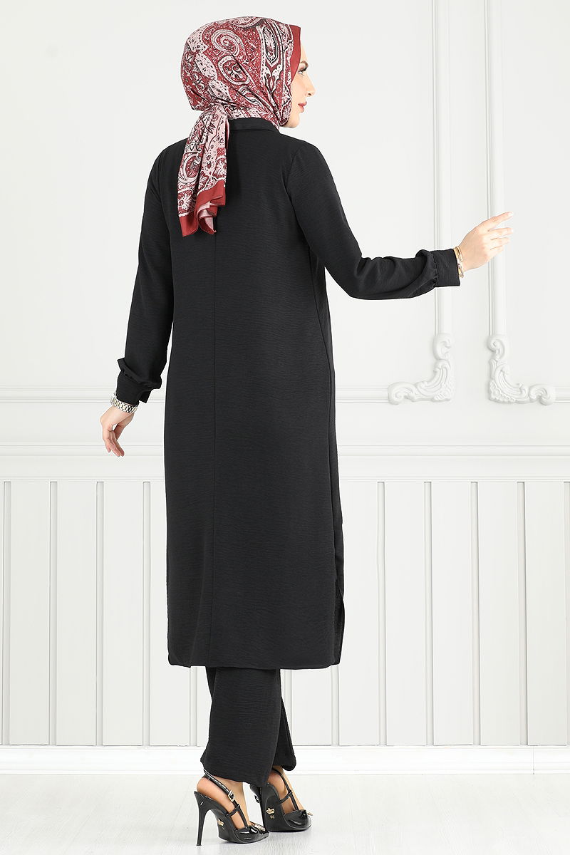 Yarım Düğmeli Aerobin Takım Siyah