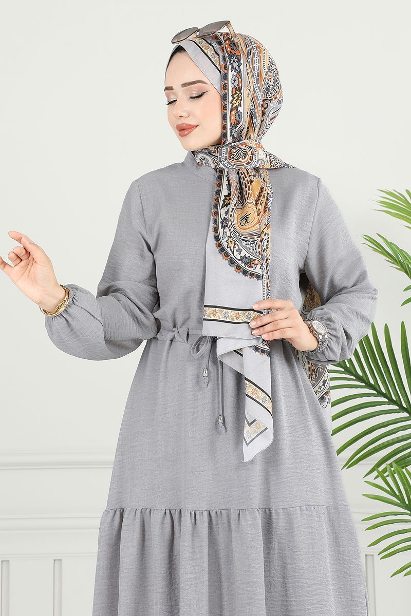 Yarım Düğmeli Elbise Gri