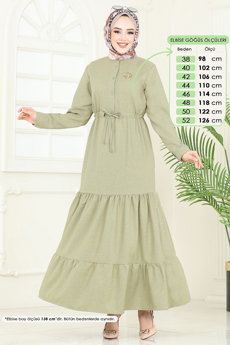 Yarım Düğmeli Elbise 3049KTR750 Çağla