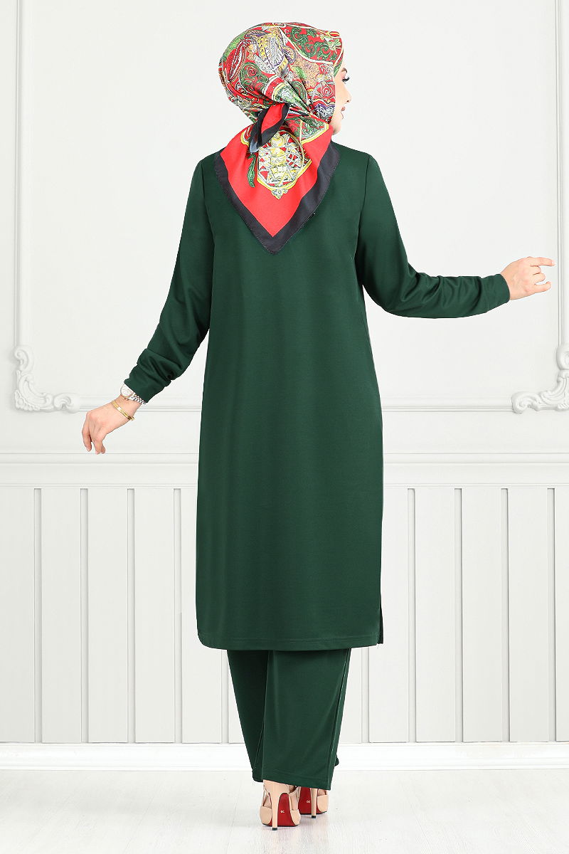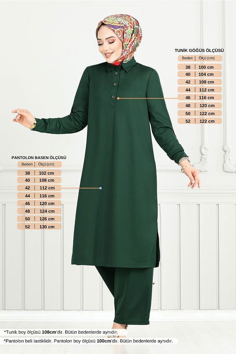 Yarım Düğmeli İkili Takım Zümrüt