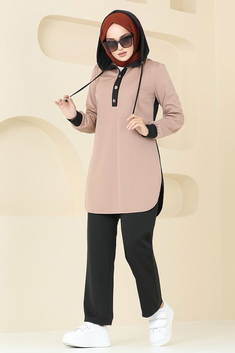 Ürün Özelliği : Yeni sezon tesettür moda ürünüdür. Ürün Kapşonlu yakadır. Ürün Önden kullanılabilir yarım düğmelidir. Astarsızdır.Kapşon ürüne dikilidir. Pantolon beli lastiklidir. Konsept fotoğraf çekimlerinden dolayı üründe ton farklılığı olabilir.