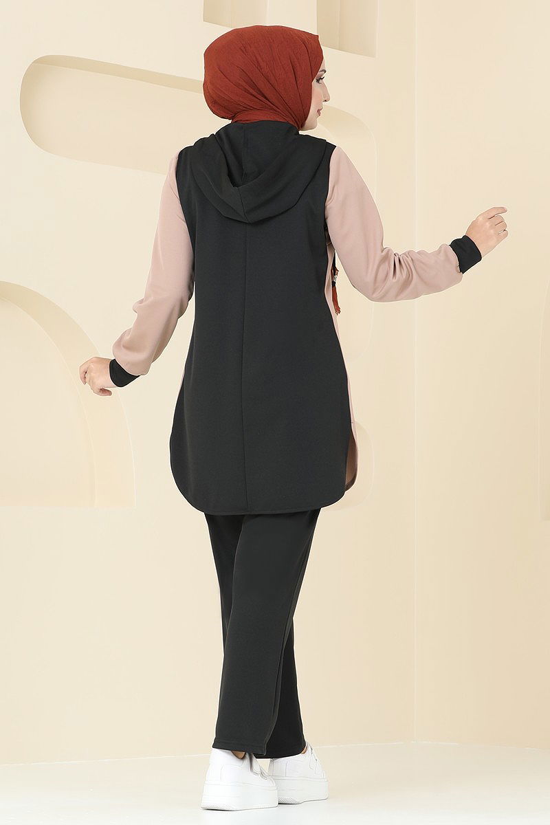 Yarım Düğmeli Kapşonlu Takım Vizyon&Siyah