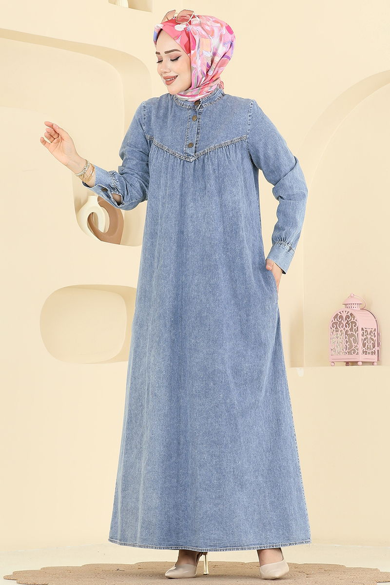 Yarım Düğmeli Kot Elbise Açık Kot