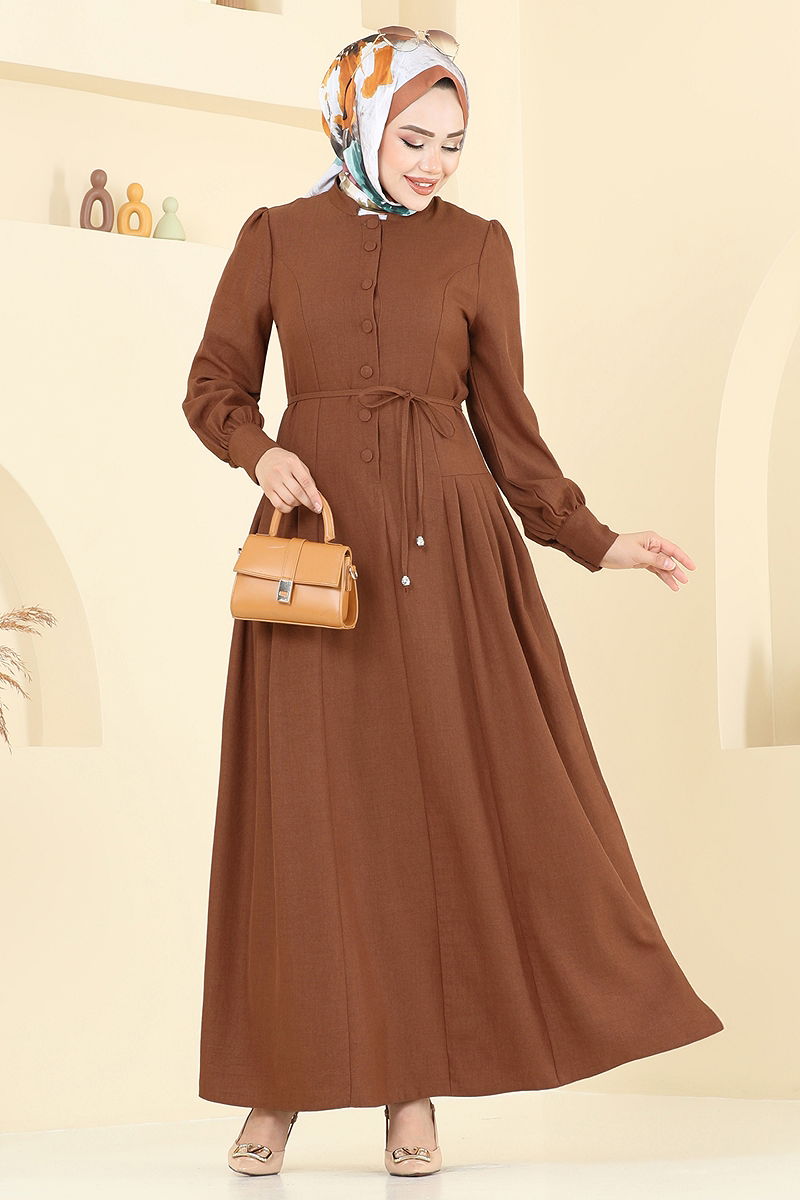 Yarım Düğmeli Sofia Elbise 2705SL432 Açık Kahve