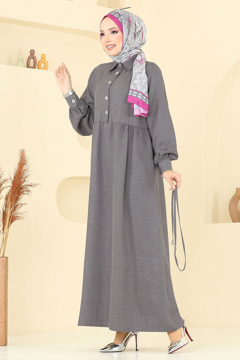Yarım Düğmeli Sofia Elbise Antrasit