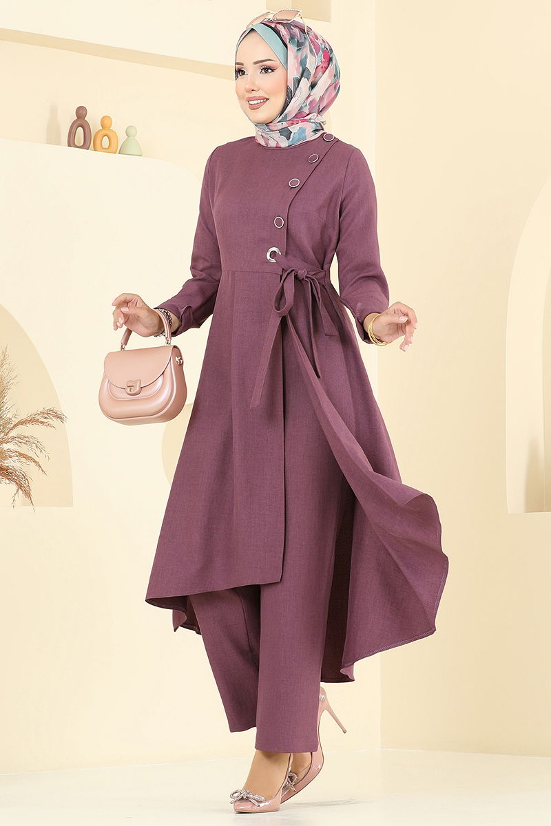 Yarım Düğmeli Sofia Takım Mürdüm