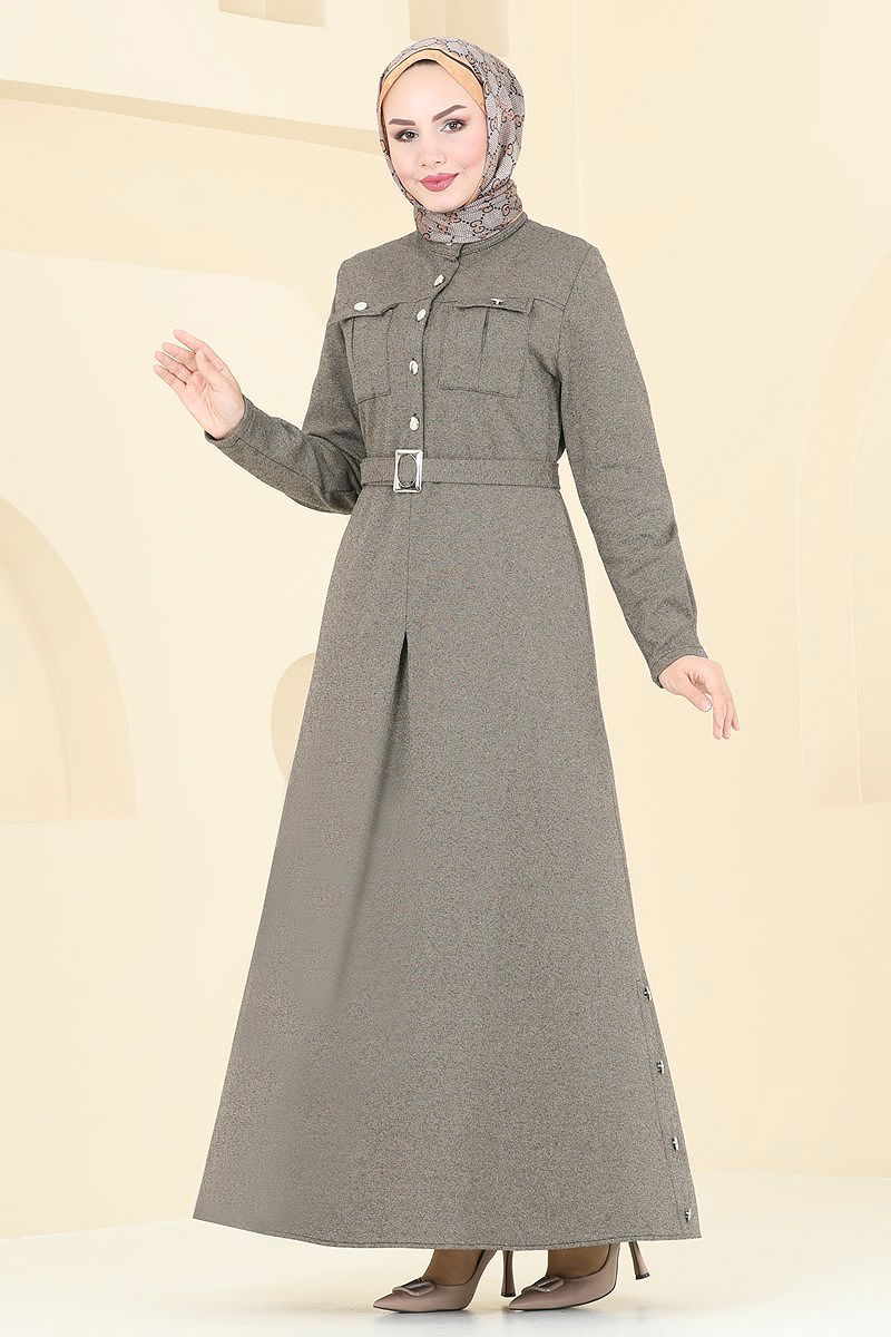 Yarım Düğmeli Tesettür Elbise PL9108 Vizyon
