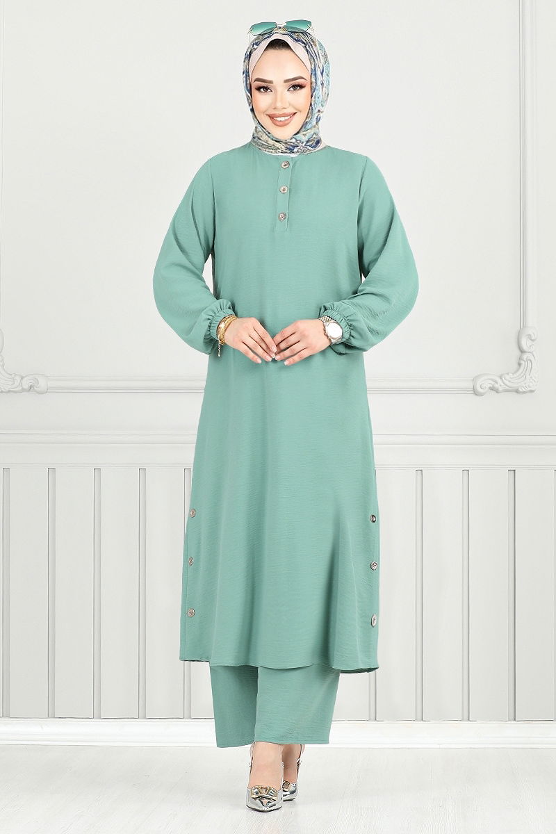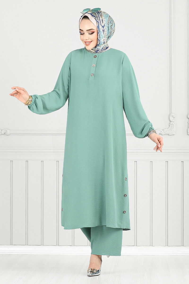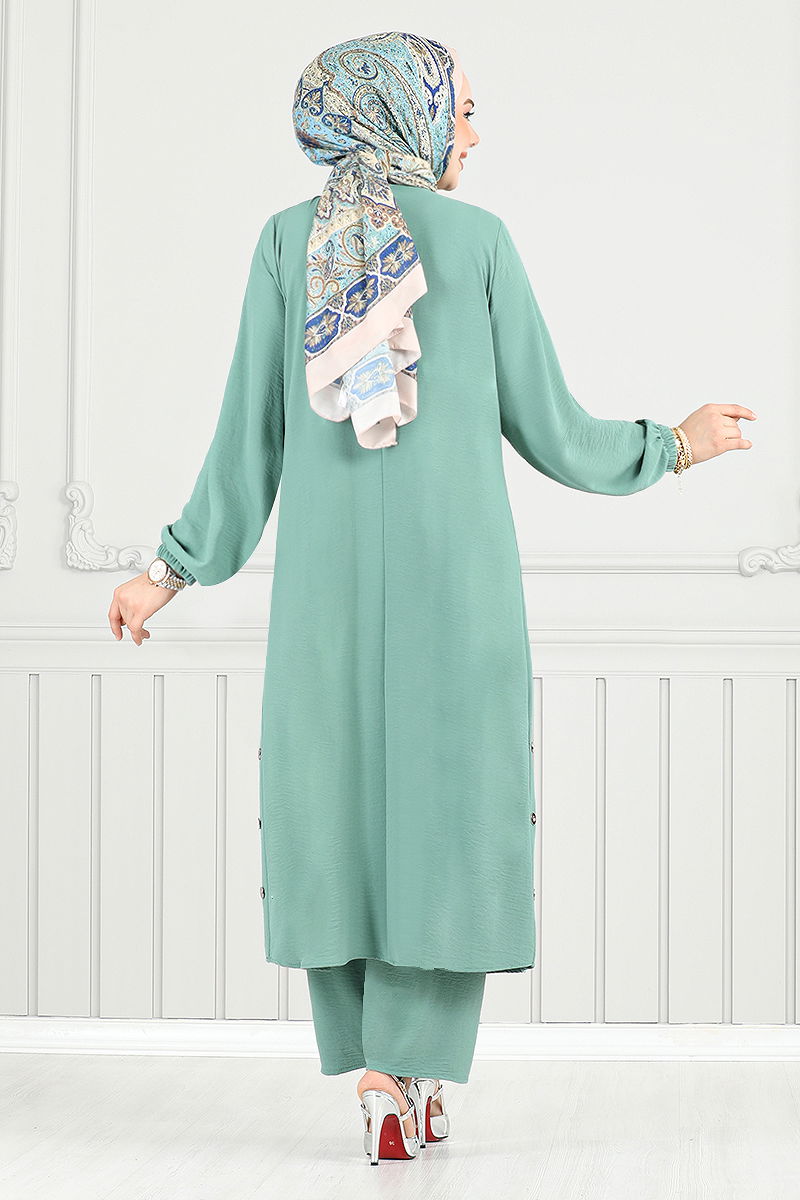 Yarım Düğmeli Tesettür Takım Açık Mint