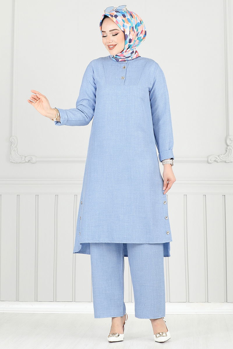 Yarım Düğmeli Tesettür Takım Bebe Mavisi