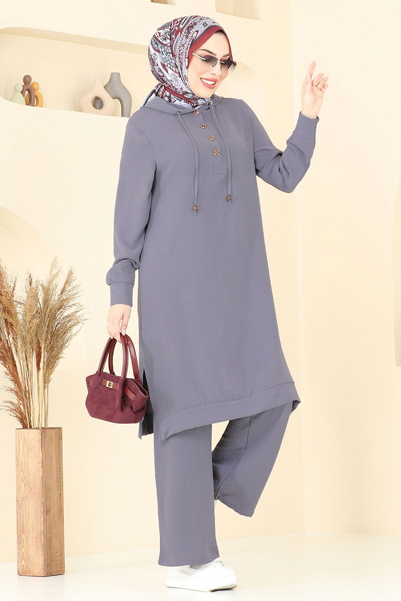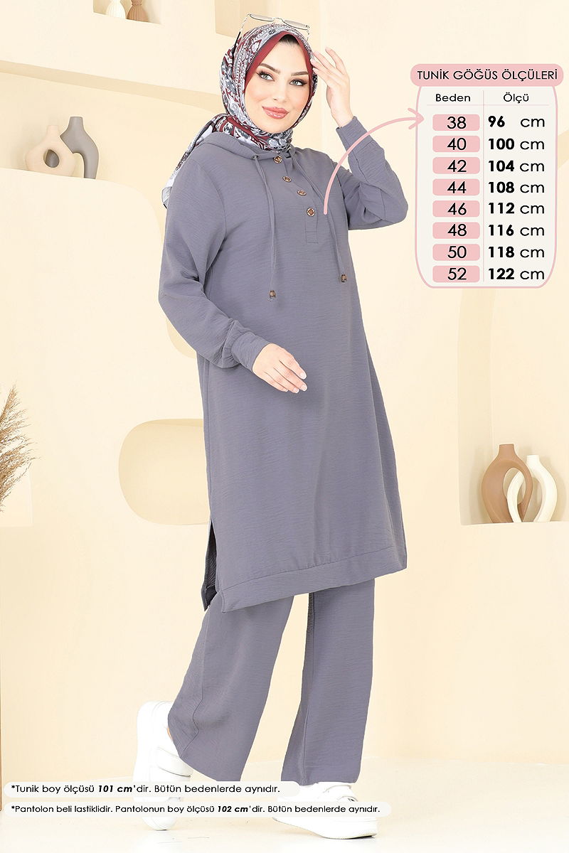 Ürün Özelliği : Yeni sezon tesettür moda ürünüdür. Ürün Kapşonlu yakadır. Ürün Önden kullanılabilir yarım düğmelidir. Tunik yandan yırtmaçlıdır.. Astarsızdır. Kapşon ürüne dikilidir. Pantolon beli lastiklidir. Konsept fotoğraf çekimlerinden dolayı üründe ton farklılığı olabilir.