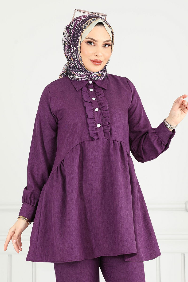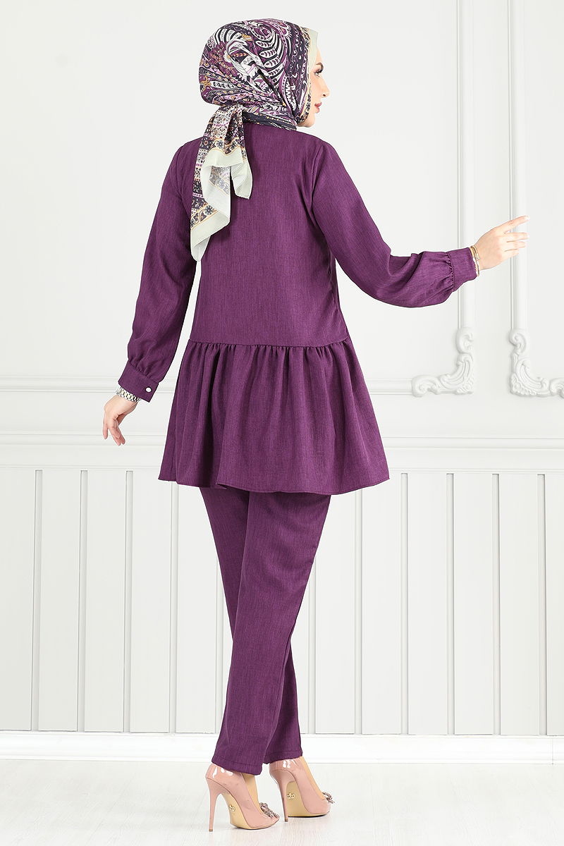 Yarım Düğmeli Tesettür Takım 6093TEG847 Mor