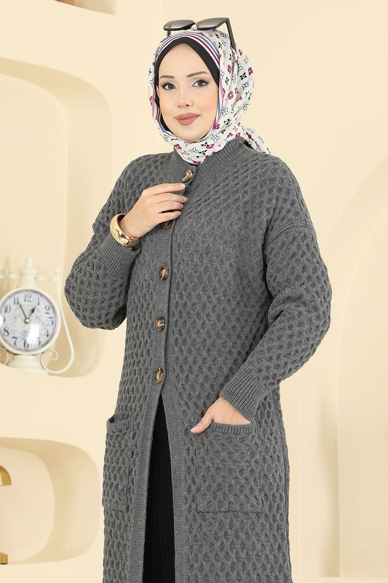 Yarım Düğmeli Triko Hırka Antrasit
