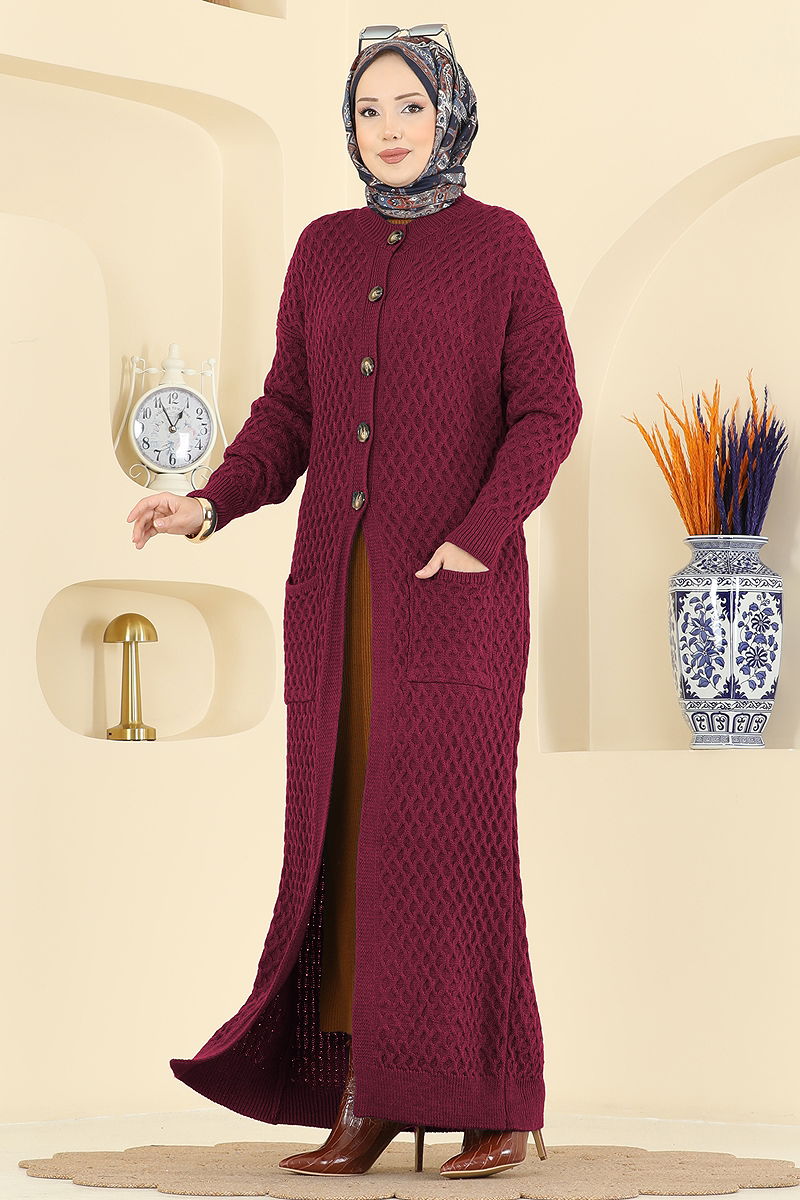 Yarım Düğmeli Triko Hırka 4278BRZ597 Bordo