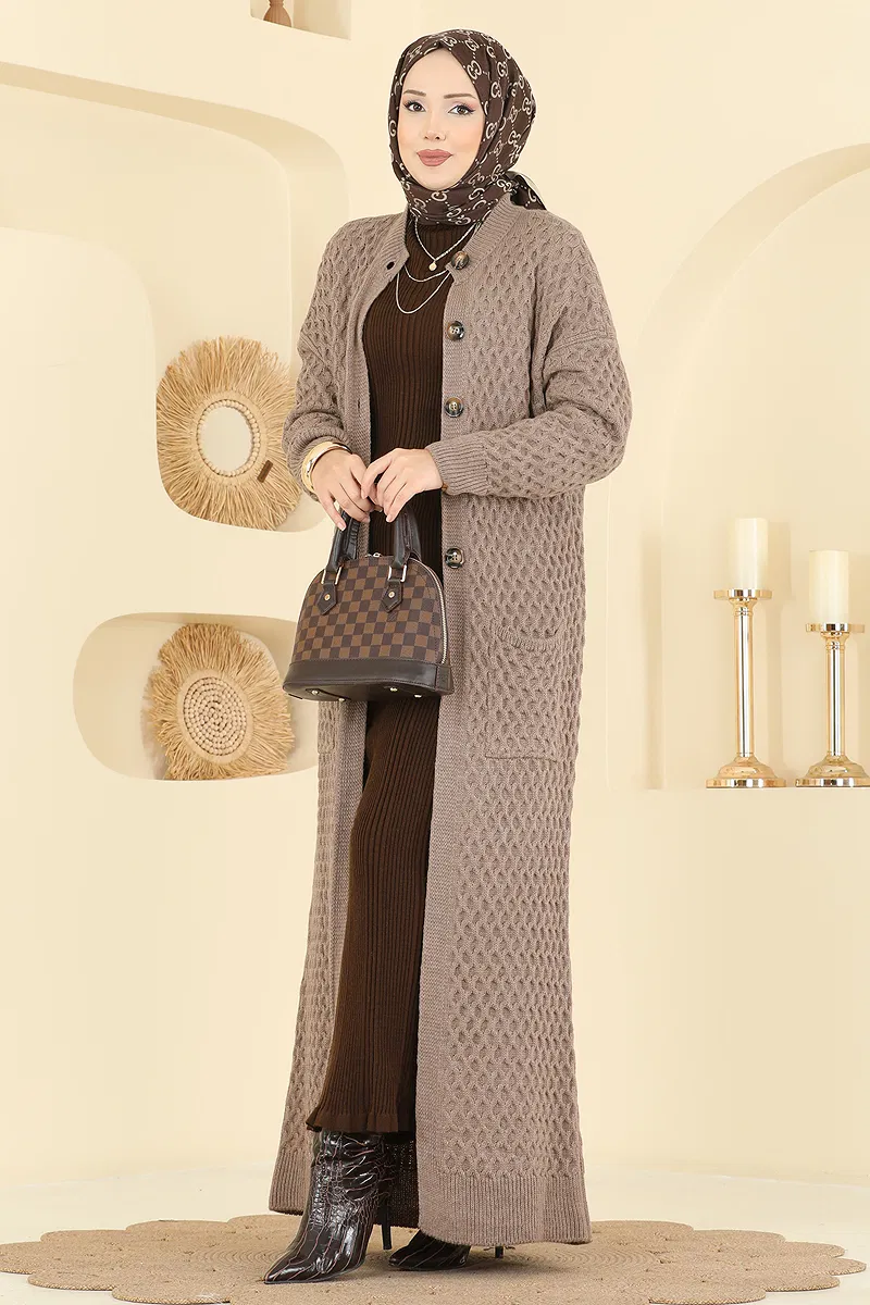 Yarım Düğmeli Triko Hırka 4278BRZ597 Koyu Vizyon